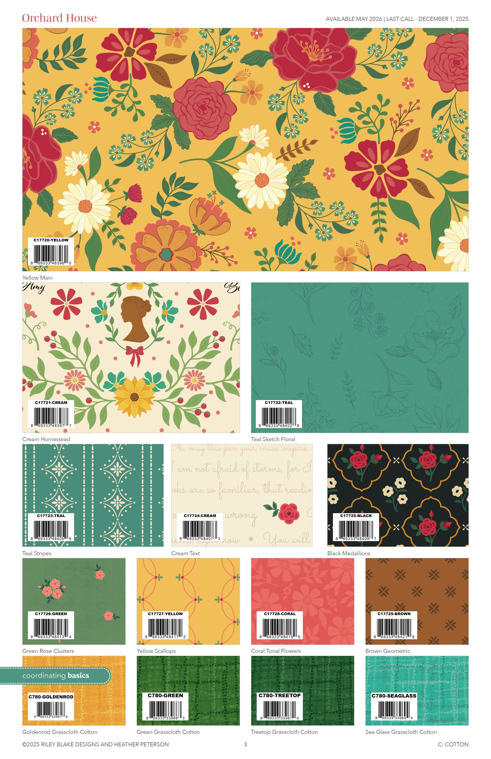 Fat Quarter bundle contains all 30 prints from the Orchard House collection by Heather Peterson for Riley Blake Designs. This bundle will be in stock in May of 2026, so this listing is to preorder the bundle and it will ship once we have it in stock.