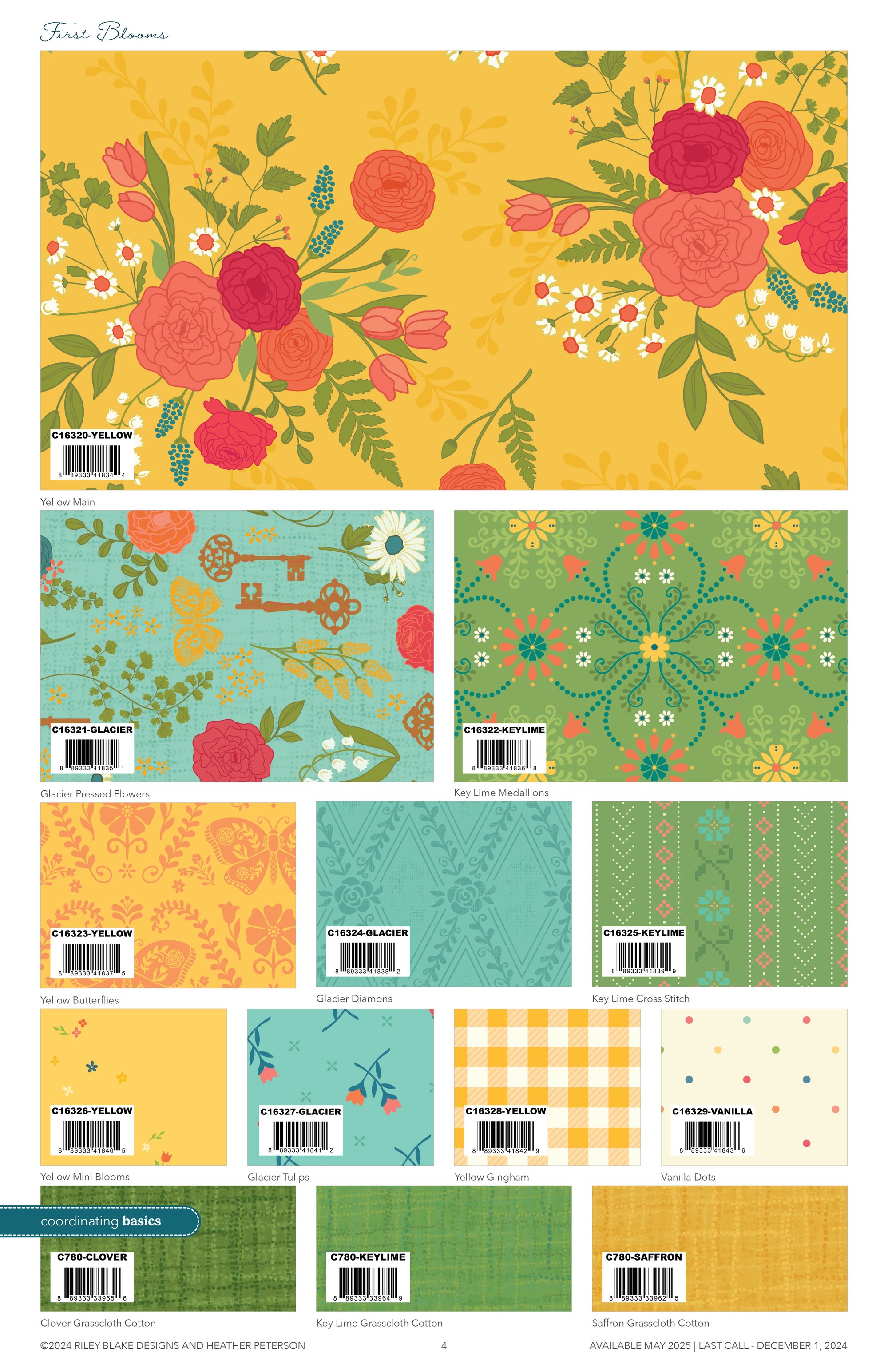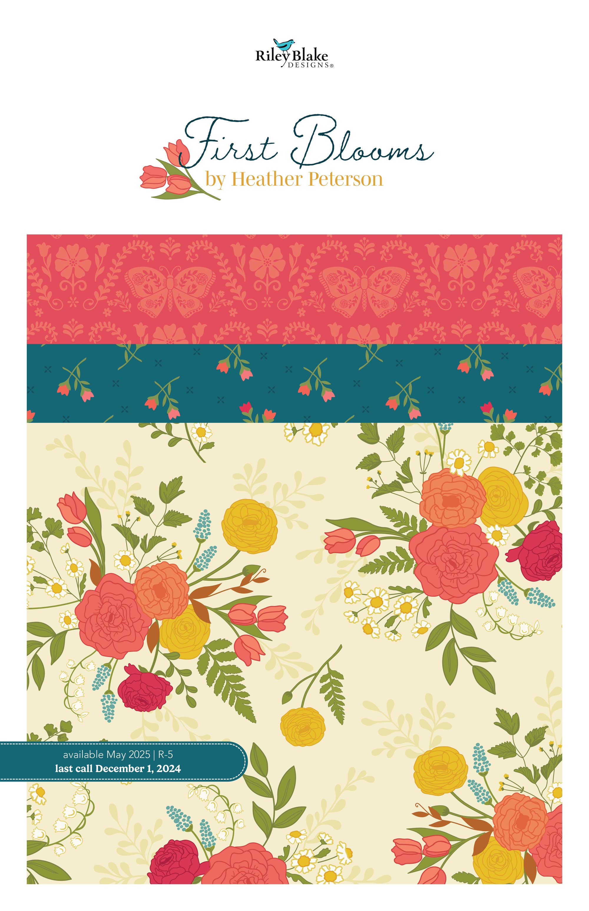 Kit includes fabric from the First Blooms collection by Heather Peterson for Riley Blake Designs. The kit includes fabric for the quilt top and binding.